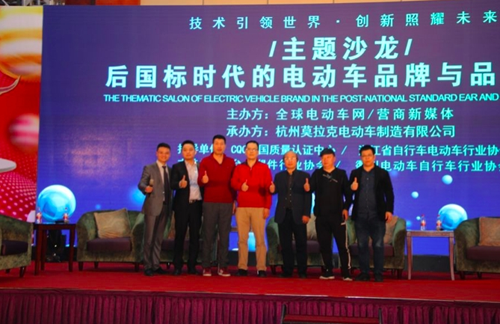 年會(huì)中,莫拉克不僅回首了15年來的成長(zhǎng)旅程,更是為展望未來舉辦了由全球電動(dòng)車網(wǎng)\營(yíng)商電動(dòng)車雜志主辦,莫拉克電動(dòng)車承辦, CQC中國(guó)質(zhì)量認(rèn)證中心;浙江省自行車電動(dòng)車行業(yè)協(xié)會(huì)指導(dǎo);臺(tái)州塑件行業(yè)協(xié)會(huì)、衢州電動(dòng)車自行車行業(yè)協(xié)會(huì)支持的“后國(guó)標(biāo)時(shí)代的電動(dòng)車品牌與品類格局”主題沙龍。