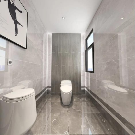 一層衛生間選用伊莉莎白瓷磚暢銷款“巴塞羅那”深淺兩種色系搭配,淺灰系明亮質感,深灰系沉穩耐臟;走一圈線條裝飾,一點“小心機”讓衛浴間提升了一個顏值檔次。