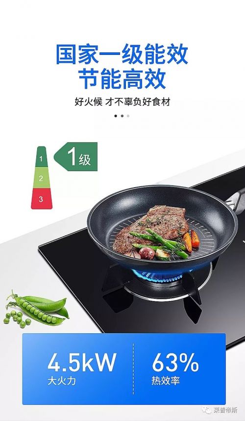 炒菜時如果火焰呈紅黃色,不是明亮的藍色,說明燃氣燃燒得不充分。“紅黃火”溫度不高、耗費燃氣還有安全隱患。四腔供氣系統的設計,全上進風,讓燃燒更充分,更高效?;鹧鏈囟雀?,爆炒更有力。燃氣充分燃燒,自然更節能。1級能效,大火力也能很省錢!