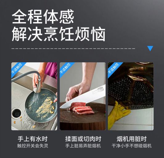 當(dāng)手上沾滿油污又不方便操作煙機(jī)時(shí),可以喊出小智幫忙調(diào)節(jié)煙機(jī)風(fēng)量大小和開(kāi)關(guān)機(jī)、照明等功能,隔空操控油煙機(jī)更方便干凈衛(wèi)生。