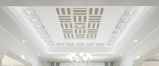 白天與黑夜如何區(qū)分?臥室與客廳怎樣更貼近自然?品格高端全屋頂透過(guò)產(chǎn)品,向每一位觀(guān)眾完美詮釋“一屋一空間”的生活理念。適用于餐廳空間的疏影吊頂,將鏡面和格柵結(jié)合,搭配雪弗板雕刻工藝,若隱若現(xiàn),光影相間,美感由內(nèi)而外自然流露,營(yíng)造出靜謐安詳?shù)难胖虑閼选_m用于廚房空間的芳華系列,采用絲印描金技藝,綠意和明黃的收邊點(diǎn)綴,讓清新、盎然的意境躍然于頂上,一個(gè)知性靈動(dòng)的藝術(shù)空間孑然而生。