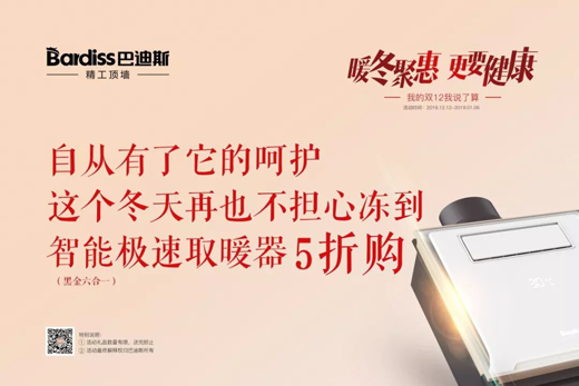 巴迪斯吊頂借助雙十二的契機(jī),推出“暖冬聚惠,更要健康”全國(guó)促銷(xiāo)活動(dòng)。