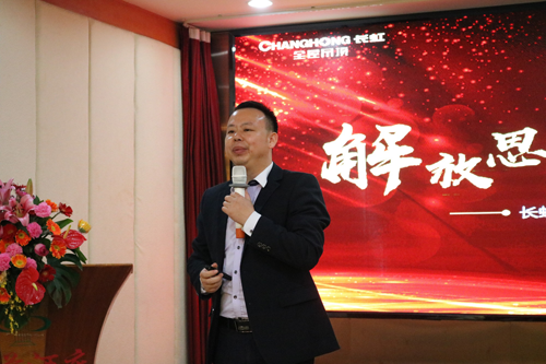 在第一天會上,長虹全屋吊頂事業部運營總監陳令先生,首先對公司員工以及經銷商們表示了感謝,接著發表了“新家居常態下的品牌思考”為主題的精彩演講。議程中,他重點提出了“解放思想,決勝終端“的發展戰略目標,堅定不移地將長虹全屋吊頂打造成讓老百姓買得放心,用得放心的全屋吊頂消費者品牌, 贏得了現場經銷商們的連連好評,掌聲不斷。