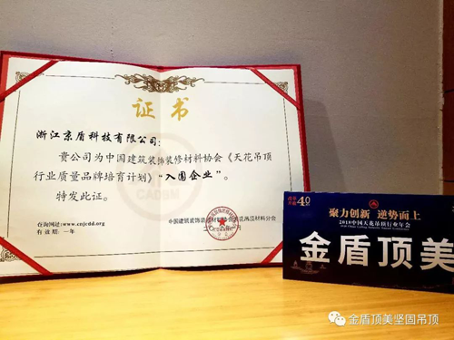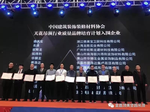 金盾頂美榮獲2018年度【質量品牌培育計劃】集成吊頂行業【十大公認品牌】