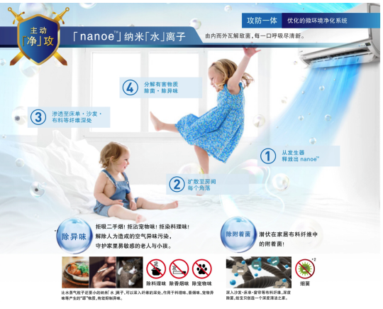 空調(diào)十大品牌松下的HEN系列攜載的nanoe納米水離子是自然界中由水形成的一種新型微粒離子,具有與人體皮膚相似的弱酸性。當(dāng)用戶使用它時(shí),空調(diào)只需打開一個(gè)鍵就可以通過(guò)發(fā)電機(jī)向室內(nèi)釋放大量的納米水離子。然而,這些納米水離子會(huì)吸附灰塵、浮游細(xì)菌、粘附細(xì)菌和其他漂浮在空氣中的有害物質(zhì),并滲透到窗簾、沙發(fā)、布料等纖維的深處,同時(shí)抑制家中細(xì)菌的生長(zhǎng),從而促使室內(nèi)空氣良好有效的循環(huán)。