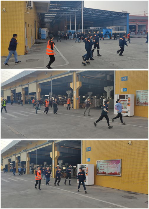 在總指揮的指令下,全體員工積極配合,有條不紊地進行撤離,從疏散到統一集合點所用時間在規定范圍內,成功安全撤離危險區域。