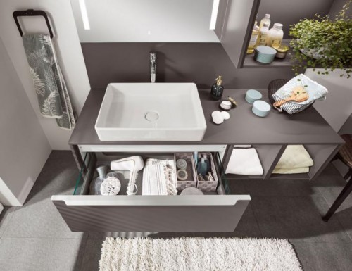 德國柏麗浴室柜的懸掛系統、盆位和存放位置的布局是根據使用習慣和人體力學定制設計的。在儲物方面,多種儲物形式交錯組合,在保留設計感的同時充分利用空間,在實現高效儲物的同時,實現感官有序。
