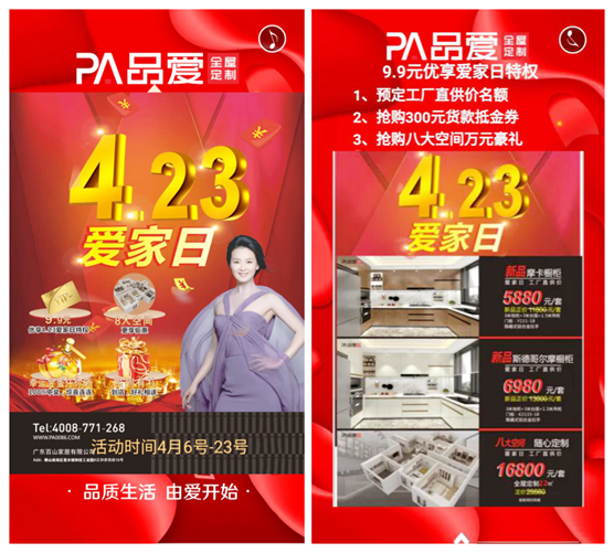 同時,四月也是品愛全屋定制的“愛家月”。品愛全屋定制將每年的4月23日作為“愛家日”,旨在呼吁更多的人關(guān)懷家庭并反思自己的愛家方式。最近,品愛全屋定制就發(fā)布了“愛家日”系列優(yōu)惠政策,讓更多人能直接參與其中。