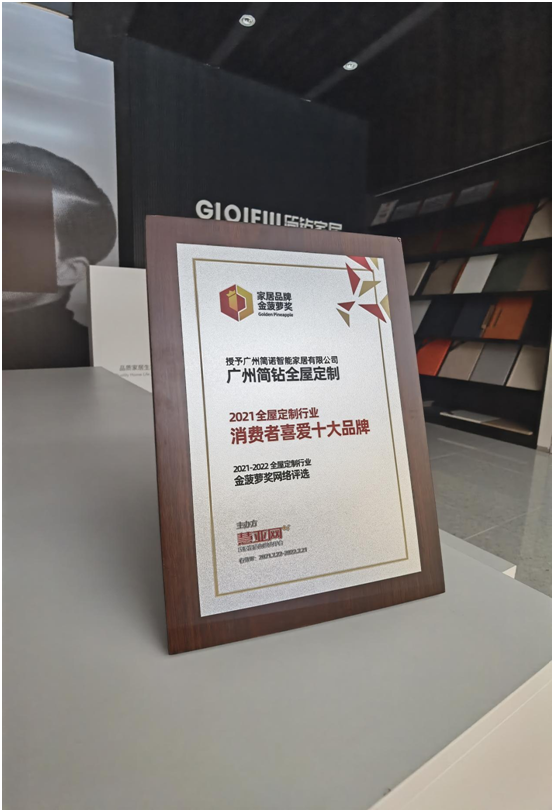 如今,好產品源于好設計,創新設計已成為簡鉆家居最關鍵的核心驅動力之一,通過設計全面撬動家居市場新契機,是簡鉆家居突破行業內卷的關鍵。就在“向新而生”2021第六屆中國大定制家居營銷發展論壇上,簡鉆家居榮獲家居品牌金菠蘿獎的“2021全屋定制行業消費者喜愛十大品牌”獎項,實至名歸!