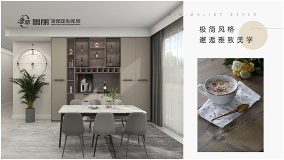 匿大美于無形,藏萬象于極簡。魯麗巧妙利用隱藏式設計來收納雜物,有利于提高空間的利用率,讓整個家變得更整潔,既美觀又實用,在視覺上和使用上,都可以展現極簡的特色。例如,魯麗全屋定制櫥柜,充分考量居者生活需求與空間因素量身定制,將收納功能做到極致,還原一個舒適安逸、整潔有序的極簡之家。