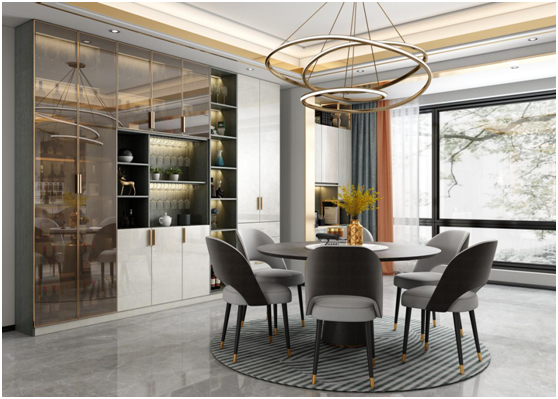 簡·愛保羅全屋定制打造極具質感的格調私廚,為每個平淡的日子賦予一抹格調質感,簡約時尚的餐桌椅,營造出舒適怡人的用餐氛圍。晚餐后,家人圍坐。敘說彼此歡喜,暢談生活,其樂融融。