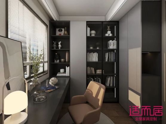 一個5平方的小房間,用來做書房最合適不過,靠窗做一個長條書桌,靠墻做L型書架,這樣的儲物量,再多的書也不怕不夠放。