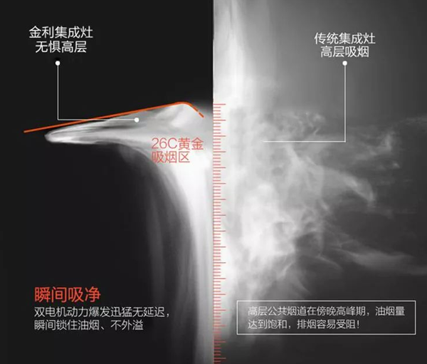 著名品牌金利集成灶的吸煙方式為側吸低排,其高度正好在金控區(qū)內(nèi)。這種煙氣吸收方式和高度設計不僅能有效吸收煙氣,還能防止煙氣上升和擴散。即使辣椒在金利集成爐上油炸,也不容易窒息。當油煙問題解決了,廚房里的悶熱問題也就解決了。