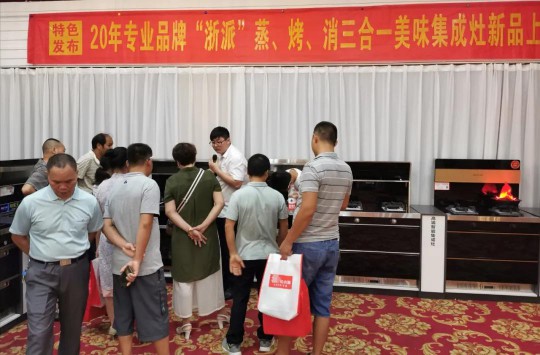 大家聚集在產品陳列區,對浙派各系精品仔細體驗,親身感受到浙派集成灶、煙機等產品的強大性能。大家仔細欣賞和討論,贊不絕口,對浙派新產品的推出產生濃厚的興趣和信心,并爭相申請訂貨。