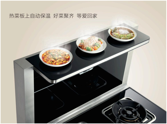 菜肴起鍋裝盤后,還可放置在暖菜板上自動保溫,充足的熱量讓菜肴的色澤、口感不打折扣。左灶炒菜之余,右灶還能熬上一煲養生的山藥蓮藕大骨湯,大火燒開轉小火后,智能定時繼續熬煮至自動熄火,安心回客廳再玩幾局飛行棋。時間一到,好菜齊聚,大家可以一起吃上熱騰騰的美味佳肴。