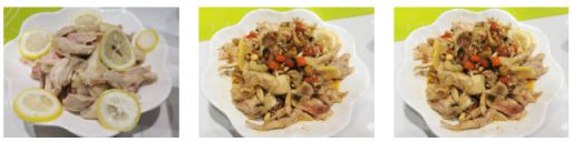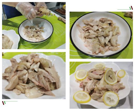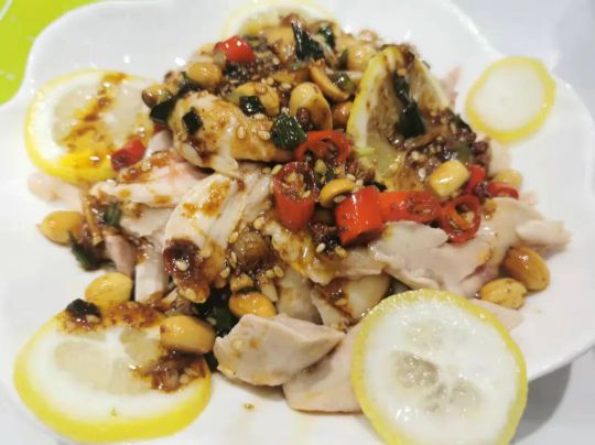 04 調(diào)好的料汁淋在雞肉上,口水雞新鮮出爐