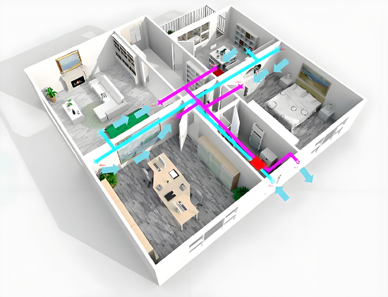 此外,新風系統還能有效調節室內濕度和溫度,創造更加舒適的居住環境。在潮濕的季節里,新風系統能夠將室內的濕空氣排出,引入干燥的新鮮空氣,有效防止霉菌和細菌的滋生。而在寒冷的冬季或炎熱的夏季,新風系統則能與空調系統配合使用,實現室內溫度的精準控制,讓我們四季如春,享受舒適的居家生活。