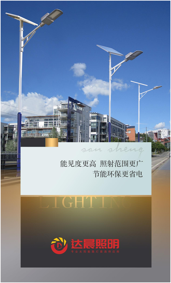 太陽能路燈能夠擺脫電力的控制和束縛,避免了交流電不穩定帶來的光照亮度不穩定、斷電等情況,還不用擔心用錯峰用電帶來的供電困難。達晨興”太陽能路燈,卓越品質,確保全年亮燈、整晚亮燈,讓太陽的光輝在黑暗中延續。
