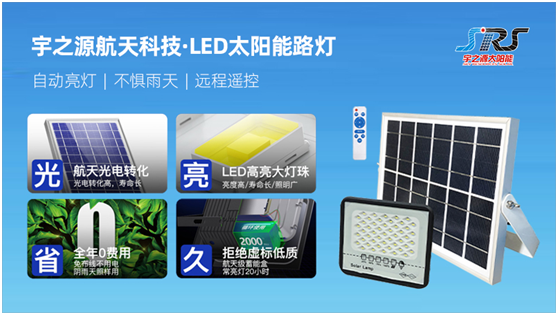 宇之源太陽能板選用A級正品晶片材料制造,其擁有轉換效率高、弱光發電好、壽命長的特點。宇之源太陽能路燈的五金支架采取蜂窩設計結構和滿焊焊接工藝制作,可抗15級臺風;選取全鋁設計,耐用而不生銹。宇之源太陽能路燈的防水性能達到IP66的技術,使用高品質的元器件,加上自動焊接、自動貼片工藝,增強太陽能路燈的穩定可靠性;每個細節的設計和用材都確保太陽能路燈擁有10年以上壽命,比普通太陽能路燈壽命高于5倍。