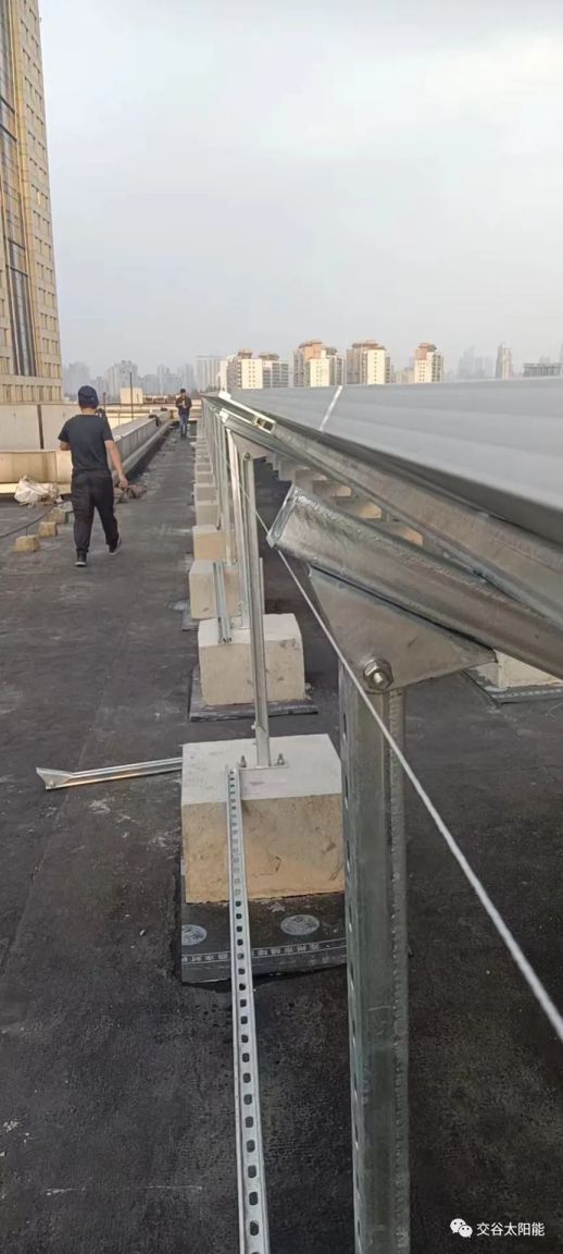 在每個屋面,將每串單晶硅太陽電池組件每塊橫向放置,排成規則的行列,期間預留維護通道。采用光伏組件形成一個子陣列,作為一個安裝單元,整個屋面由多個子陣列組成,陣列及陣列之間預留通道,便于后期維護,具體根據屋面情況而定。