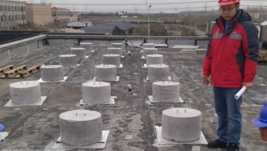 最低點(diǎn)離屋面不小于 0.3m。結(jié)構(gòu)支架采用薄壁鋼結(jié)構(gòu)支架,支架立柱斜梁均采用 U 型鋼,立柱與預(yù)制混凝土支墩中預(yù)埋 U 型螺栓通過定制底座采用螺栓連接,預(yù)制混凝土支墩下設(shè) SBS 防水卷材。支架檁條采用 U 型鋼兼做組件導(dǎo)軌,組件通過壓塊與檁條固定。
