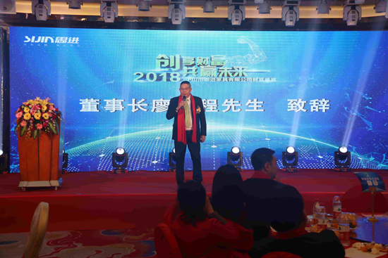 宴會上思進家具董事長廖建程先生講解了思進文化以及對于未來辦公家具行業發展趨勢進行了分析,廖董說:教父許照明先生曾經說過,辦公環境影響國力!為了此,我們就想把這件事做好,我們鼓勵員工三年買車,五年買車,我們的員工實現了異鄉添新房、父母不空巢,兒女不留守!廖董還說:實體回歸,線下渠道將王者歸來,許照明老師擔綱品牌運營和產品研發,所向都是時尚和潮頭;精益生產國內最優秀團隊進駐思進匠心制造,思進必然品質天下!