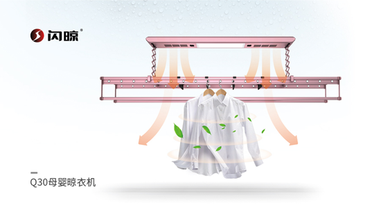 晾衣架十大品牌閃晾的Q30母嬰機專為母嬰設計,集顏值和功能于一體,使晾曬更加方便和清潔。從真正的意義上來說,它允許母親們無憂無慮解決衣服晾曬的問題,不再擔心嬰兒衣服的頻繁更換,衣服晾曬空間的缺乏,以及全家衣服雨天晾不干的問題。
