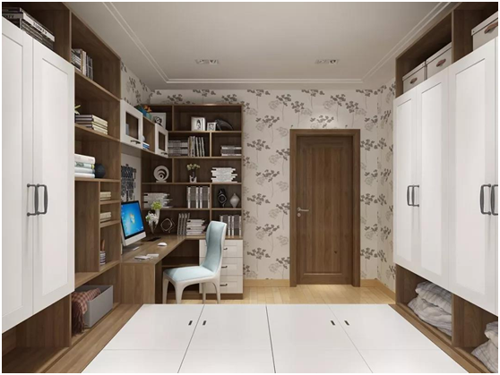 書房裝修時,墻面最好以淺色為主,這樣可以避免讓人產生壓抑感。地面適宜選擇木制地板,如若加上地毯,裝飾和防噪效果會更好。