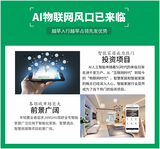 JIANSHU簡(jiǎn)舒是深圳市金安科技有限公司旗下的一個(gè)自主品牌,深圳市金安科技有限公司是一家專注于全屋智能家居產(chǎn)品自主研發(fā)、生產(chǎn)、銷售、設(shè)計(jì)、服務(wù)于一體的國(guó)家級(jí)高新技術(shù)企業(yè)。JIAHSHU簡(jiǎn)舒作為一個(gè)專注于線下B2B、B2C和線下O2O體驗(yàn)店的全屋智能家居十大品牌,在不斷占領(lǐng)更多的智能家居市場(chǎng)比例的同時(shí),也幫助了越來(lái)越多加盟者成功開店盈利,目前簡(jiǎn)舒全層智能家居總部正在面向全國(guó)招商,有興趣的創(chuàng)業(yè)者可以聯(lián)系總部了解詳情。