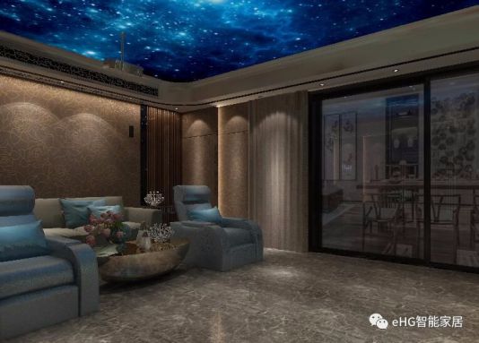 影音室再配以高端,與室內設計匹配的壁畫,座椅沙發(fā),以及主人喜愛的茶幾,各類配飾。時尚前衛(wèi)的智能影音室便新鮮出爐了。