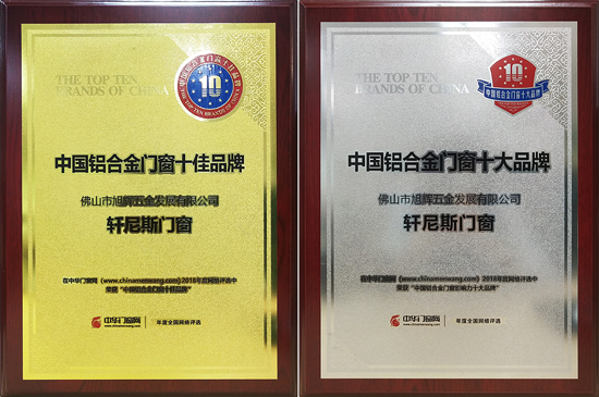 軒尼斯獲“中國鋁合金門窗十佳品牌”“中國鋁合金門窗十大品牌”雙殊榮