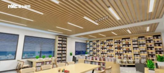 圖書館是學(xué)生用眼較多的場(chǎng)所,雷士同樣采取多層次、分區(qū)域的布燈方式。在圖書館大空間內(nèi),使用防眩的線性燈或筒燈作為基礎(chǔ)照明;對(duì)于書架,使用線性燈、硬條燈作為輔助照明,方便學(xué)生閱覽取書;課桌搭配護(hù)眼臺(tái)燈作為局部照明使用,達(dá)到區(qū)域照明全覆蓋。