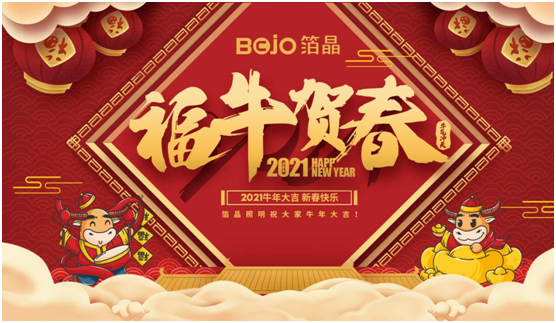 值此新春佳節(jié)來臨之際,BOJO箔晶照明全體同仁恭祝全國人們:新春快樂,吉祥如意,平安順利,團圓美滿!