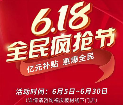 激情六月,福慶板材總部發(fā)起了“億元補(bǔ)貼,惠爆全民”活動(dòng)。整合集團(tuán)億元級(jí)資源,投入補(bǔ)貼終端經(jīng)銷商,激發(fā)板材市場活力,順利完美收官。