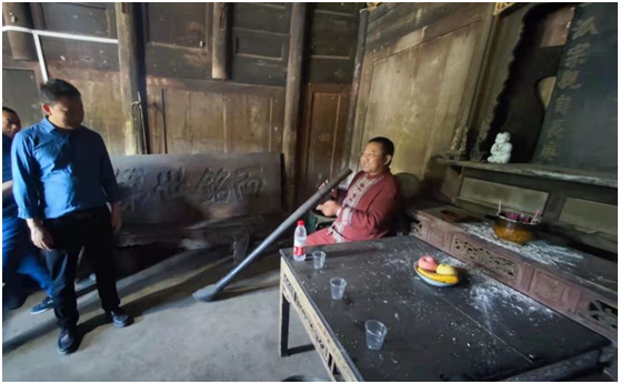 來鳳縣五道水生態(tài)旅游發(fā)展有限公司董事長(zhǎng)余向強(qiáng)為縣長(zhǎng)張作明同志展示土司煙桿