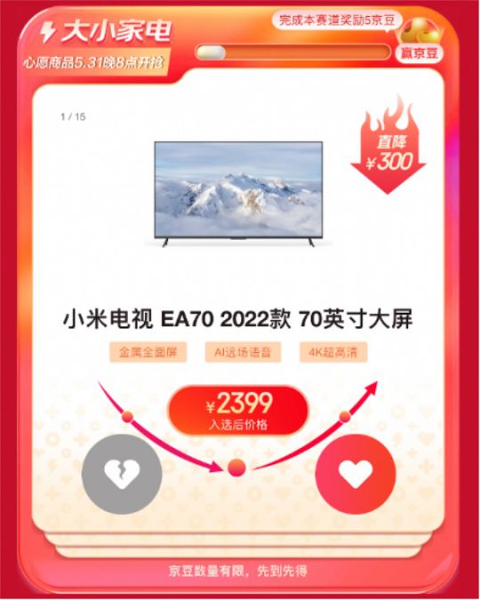 5月23日晚8點(diǎn),以“618京東和你在一起”為主題的京東618全面開啟預(yù)售。今年618,京東給大家?guī)砹烁N心的服務(wù)、更簡(jiǎn)單的玩法、更便捷的購物體驗(yàn)。其中,京東電器推出了“電器巨超值”專區(qū),用戶在活動(dòng)專區(qū)可挑選心愿商品參與投票,投票有機(jī)會(huì)獲得京豆獎(jiǎng)勵(lì),涵蓋大小家電、電腦數(shù)碼、手機(jī)、配件等大牌爆款產(chǎn)品,各賽道前30名產(chǎn)品將于5月31日晚8點(diǎn)上線開賣,專區(qū)內(nèi)的產(chǎn)品不用計(jì)算優(yōu)惠,直接一口價(jià)。除此之外,京東電器還聯(lián)合家電、電腦數(shù)碼、手機(jī)三大品類推出了30天價(jià)保、180天只換不修等服務(wù)保障,讓大家在這個(gè)618都可輕松煥新美好生活。一起來看看有哪些家電、電腦數(shù)碼、手機(jī)、配件好物吧。