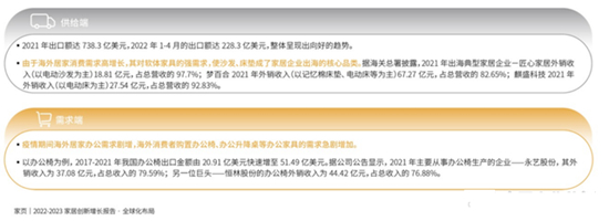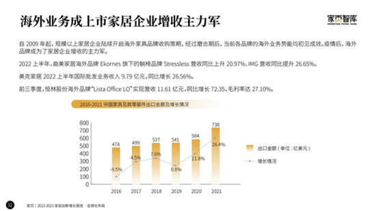 據海關總署披露,2021年我國家具及其零件出口金額為738.3億美元,同比增長26.4%,增速創下2013年以來的新高。