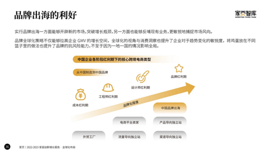 相比制造出海的時代,新的階段,企業應該謀求的是品牌的全球化。隨著全球制造業發展趨勢的變化,制造大國的價格優勢在慢慢消失,那些在制造時代成長起來的企業,可以考慮通過品牌塑造來提升自身價值。