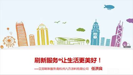 我先介紹一下我們,我們公司02年成立,到今年剛好13年。我是04年4月份成為立邦代理商的,2011年立邦在五六月份提出刷新這個(gè)項(xiàng)目,第一次在上海做試驗(yàn)的時(shí)候沒有成功。我不但是第一批,而且我是第一個(gè)做立邦刷新的人。目前我們公司有60多個(gè)員工、7家專賣店、200家分銷店,目前的客戶專員10多位,客戶專員就是銷售員,就是上門質(zhì)檢的,有14位施工隊(duì)長、150位左右的施工專員相當(dāng)于油漆工。