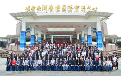 第六屆中國紅木家具品牌大會在海南博鰲亞洲論壇國際會議中心隆重舉行,與會嘉賓合影留念