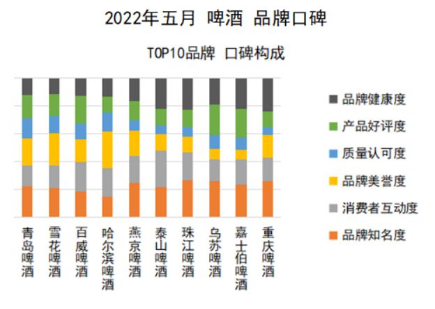 綜合來看,2022年五月啤酒TOP10品牌的口碑構成如下圖所示: