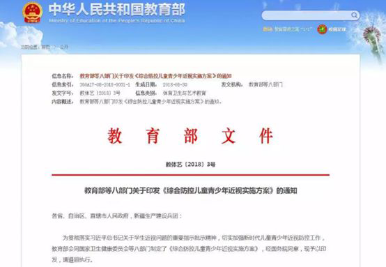 2018年8月,教育部、國家衛(wèi)生健康委員會(huì)等八部門聯(lián)合印發(fā)了《綜合防控兒童青少年近視實(shí)施方案》,方案要求教室照明衛(wèi)生標(biāo)準(zhǔn)達(dá)標(biāo)率100%,落實(shí)教室、宿舍、圖書館等采光和照明要求,使用利于視力健康的照明設(shè)備。今年,教育部、國家衛(wèi)生健康委與多個(gè)省級(jí)人民政府簽訂《全面加強(qiáng)兒童青少年近視防控工作責(zé)任書》,對(duì)降低兒童青少年近視率提出明確要求,近視防控上升為國家戰(zhàn)略。