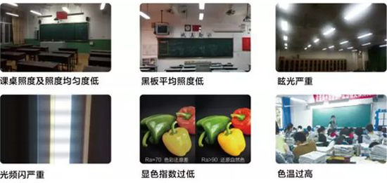 多項(xiàng)研究表明,除部分先天遺傳因素外,不良的教室照明環(huán)境是導(dǎo)致學(xué)生視力下降的主要原因之一。而由教育部教育裝備研究與發(fā)展中心、國家燈具質(zhì)量監(jiān)督檢驗(yàn)中心、學(xué)校照明環(huán)境研究中心及各省市教育裝備部門于2016年起開始進(jìn)行的全國學(xué)校照明現(xiàn)狀調(diào)研發(fā)現(xiàn),我國學(xué)校教室照明達(dá)標(biāo)率不足10%。